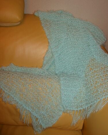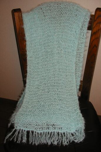 モヘアの四角いストール編み始め。 ガーター編み40目150段の予定。 15ミリのジャンボ針で編む。 けっこう編みにくくて、何度か目を落としてしまった。