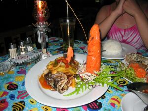 | カニ。名前は忘れました。 | 仙人みたいなのが釣りをしている像。にんじん製かな。 | |
