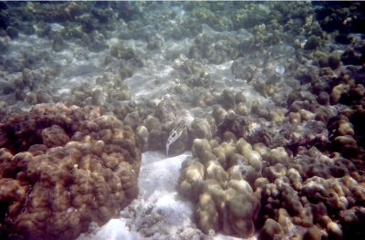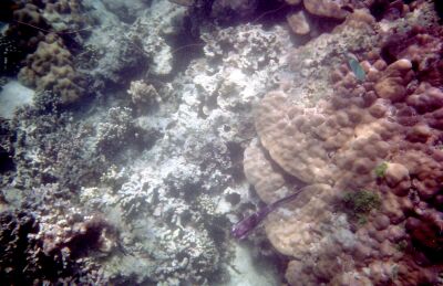| ハタの子どもかな。模様が面白い。 | タテジマキンチャクダイかな | |