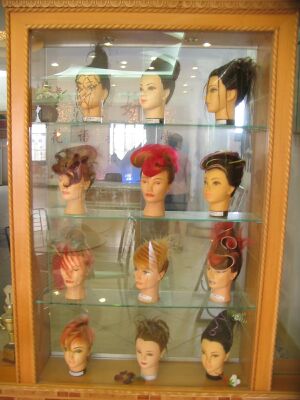 | ヘアスタイルショー用のヘアスタイルの展示品 | エステの実習室 |