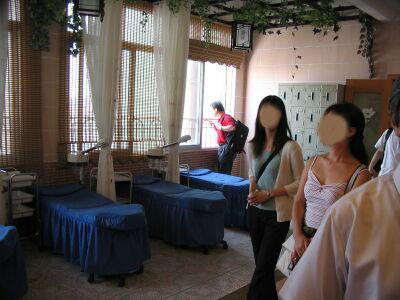 なぜかエステ用のベッドで、横たわって何かされている人がいる。