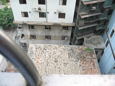 窓からの眺めが素敵だった。他のおじさんたちも、『この荒れ果てたビルがいいねえ』といっていた。