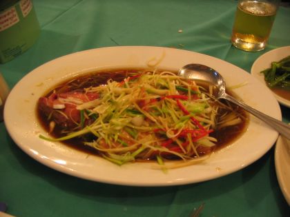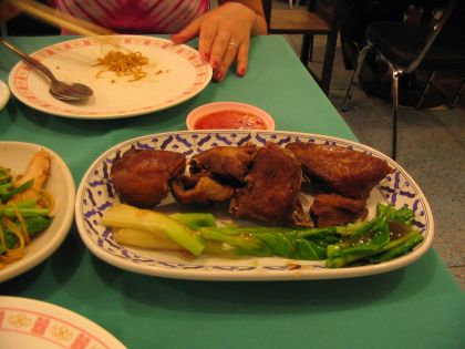 石斑の清蒸、鶏焼きそば、空心菜炒め、フライドダック。