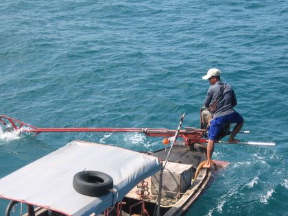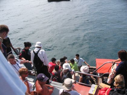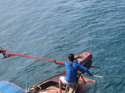 ロングテールボートでバックはできないので、うまく船のそばにつけられないと、一回離れて戻ってこなくてはいけない。