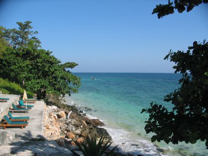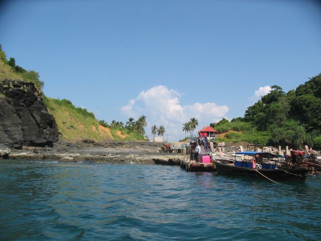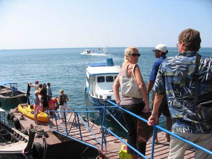 1:30に、ホテルの人に引率されて、みんなで島の反対側の桟橋へぞろぞろ歩く。