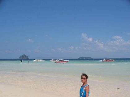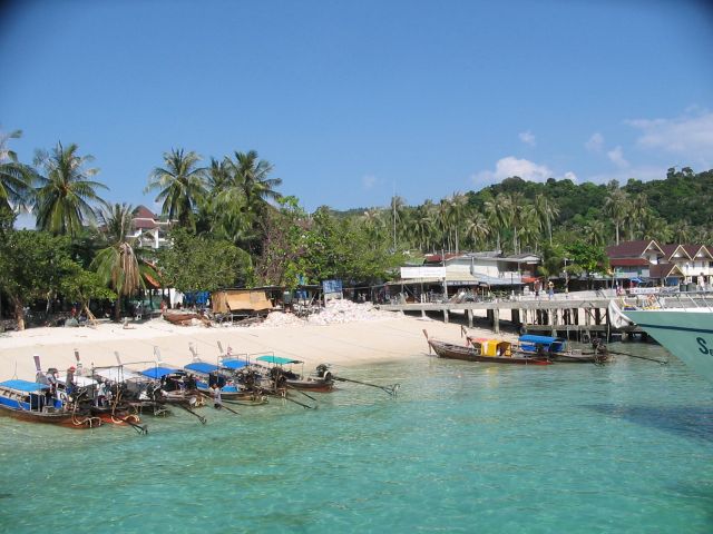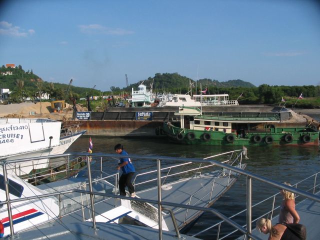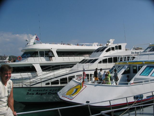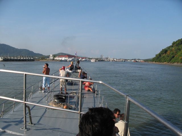 桟橋から小さいボートに乗って、プーケットまでいく船に乗り移る。