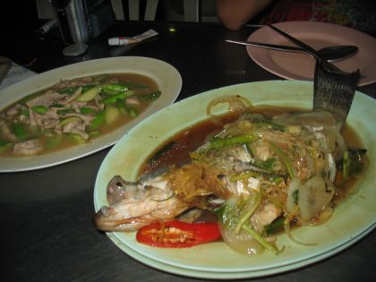 それから携帯電話屋さんに教えてもらったシーフードレストランに行くと、そこはでっかいタイ料理屋だった。