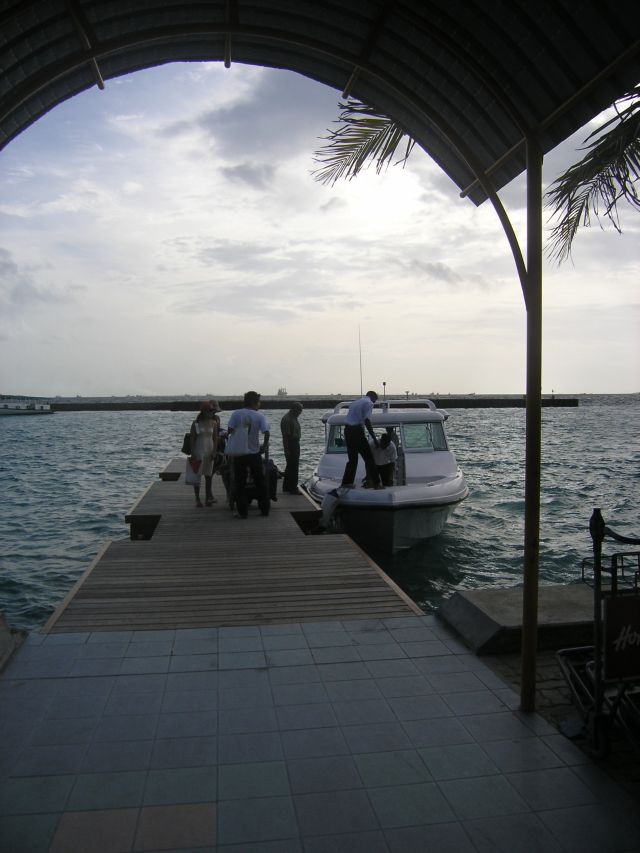 すごい日差しの桟橋でボートが来るまでうろうろ。