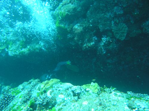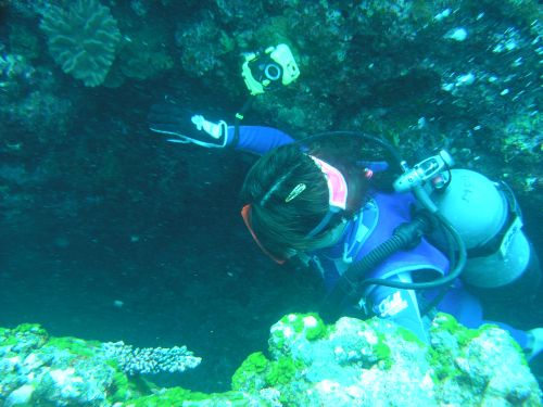 安全停止のため浅いところでうろうろしていると、たまちゃんがあっちに面白いクマノミがいるといって連れて行ってくれた。