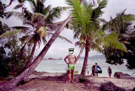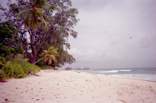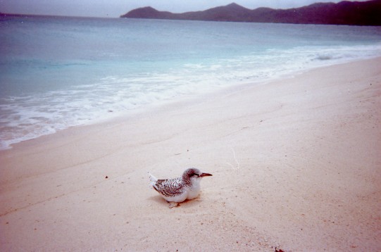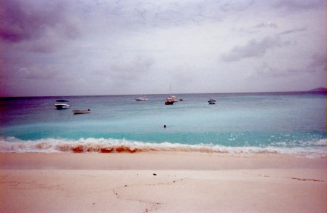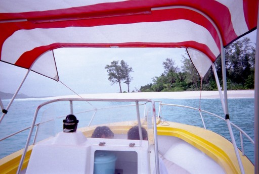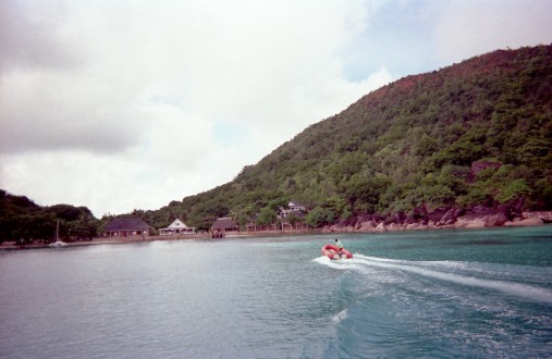 このボートで上陸したんだっけ? 記憶が..... これに乗った人たちが、すごい勢いで砂浜に乗り上げるのを見たのは覚えているが、自分がやったがどうかわからない。 しばらく海でまっていて、われわれのスキッパーとゴムボートのお兄さんがクレオール語で話していたのも覚えている。 |